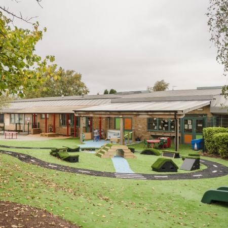 The nursery benefits from a newly constructed outdoor area. This area is secure and allows the children to experience a large outdoor play area, a permanent climbing structure, waterplay, bikes/trikes and undertake outdoor play in all weathers due to the presence of a large canopy offering shelter and shade.